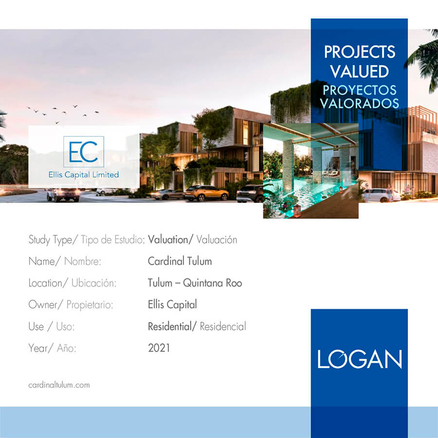 LOGAN has successfully completed the valuation of Ellis Capital Limited’s Cardinal Tulum project. It is located in Tulum, Mexico. It is a residential portfolio project. It was developed in 2021.